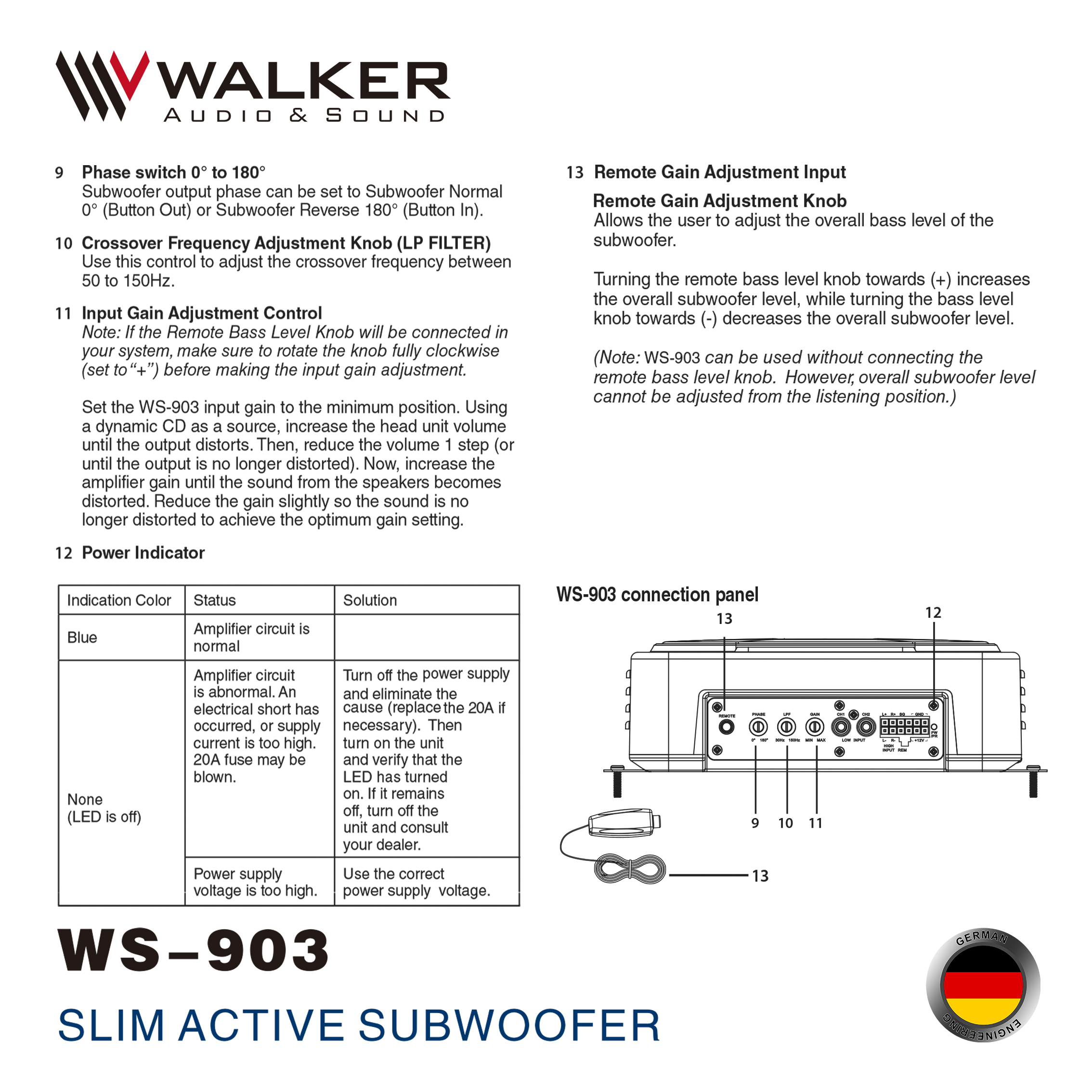 Upgrade your audio setup with the Walker WS-903 and enjoy the superior sound quality that only a premium subwoofer can provide. For more details or to purchase, visit our website or contact your local retailer today!