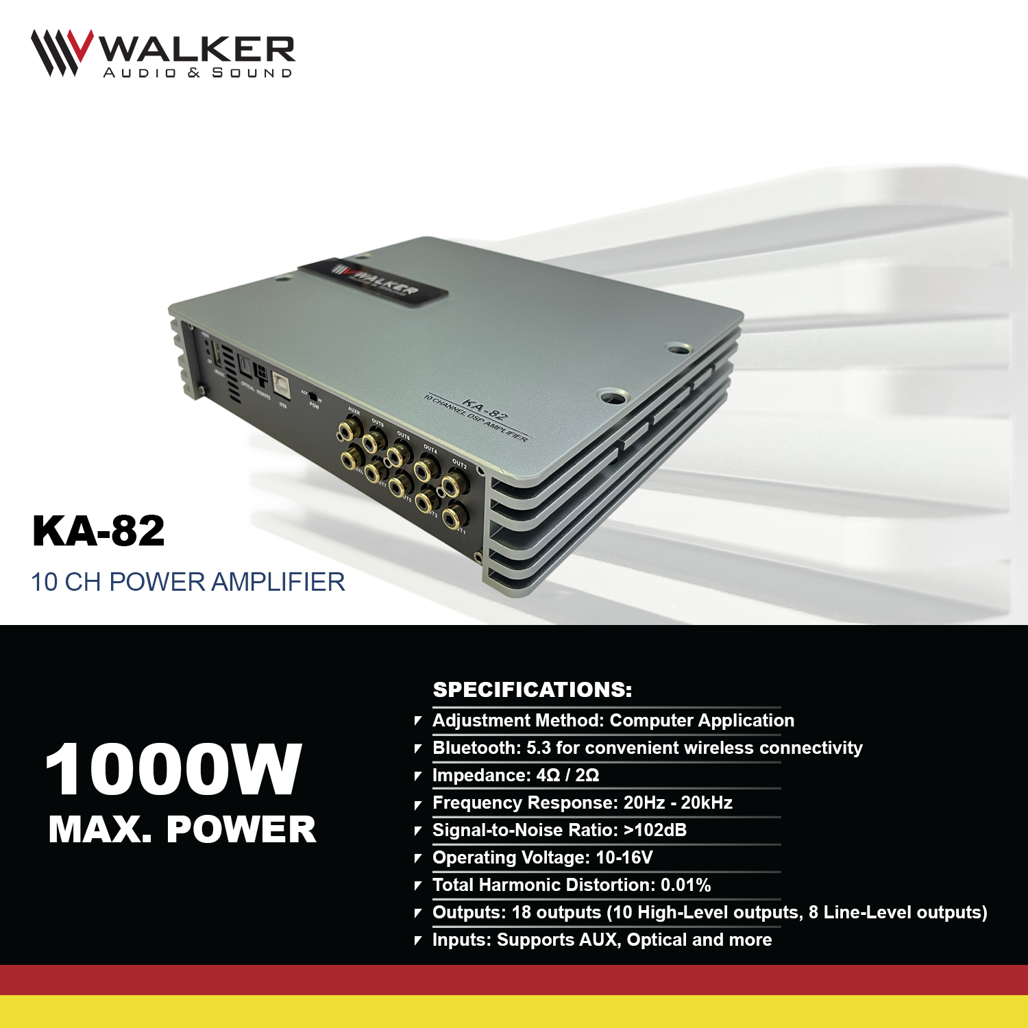 Whether for automotive audio systems, home theaters, or professional sound setups, the KA-82's performance and versatility make it a perfect choice for any audio enthusiast.